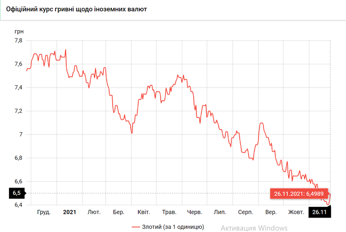 - 100 польских злотых – 649 грн. (6,49 злотый, +4 коп.)