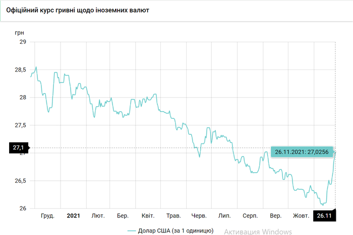 Национальный банк Украины обновил курсы валют на 26 ноября 2021 года.