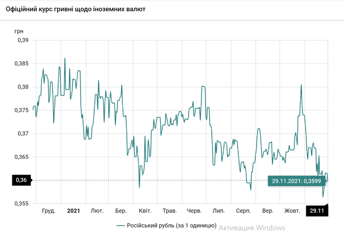 - 100 российских рублей – 35,9 грн. (3,59 за 10 рублей, -2 коп.)