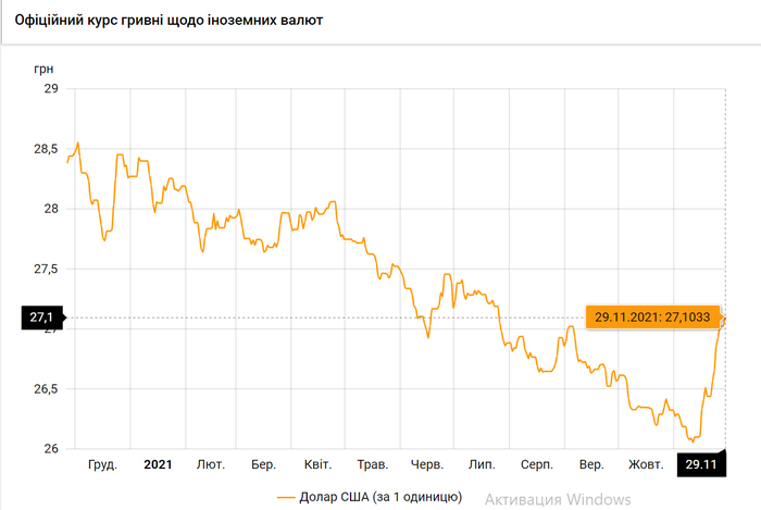 Национальный банк Украины обновил курсы валют на 29 ноября 2021 года.
