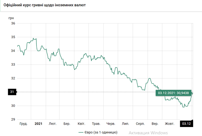 - 100 евро – 3094 грн. (30,94 за евро, +10 коп.)