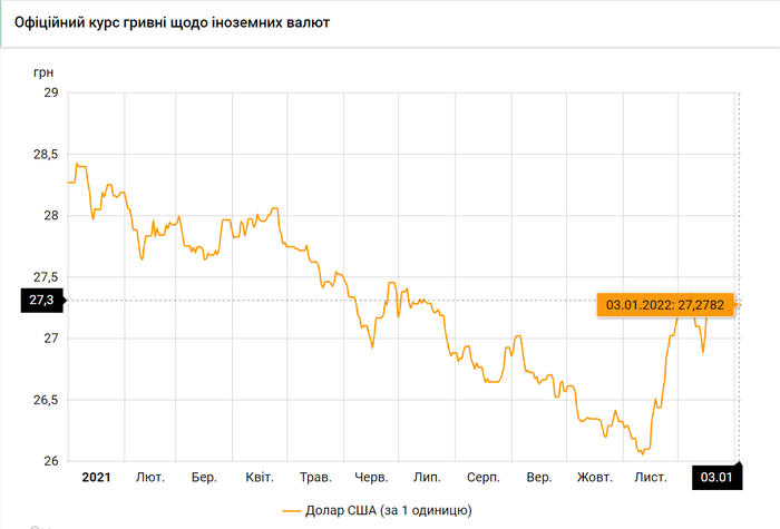 Национальный банк Украины обновил курсы валют на 3 января 2022 года.