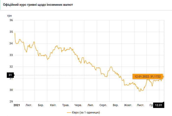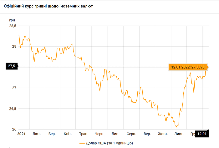 Национальный банк Украины обновил курсы валют на 12 января 2022 года.
