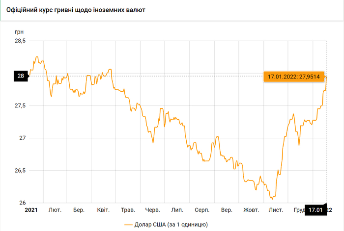 Национальный банк Украины обновил курсы валют на 17 января 2022 года.