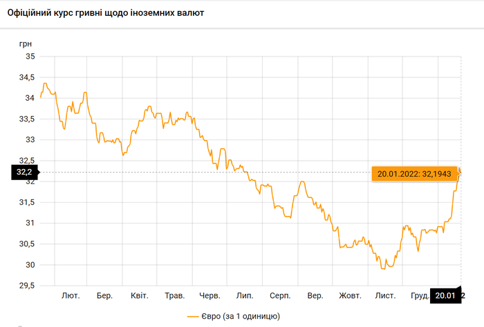 Национальный банк Украины обновил курсы валют на 20 января 2022 года.