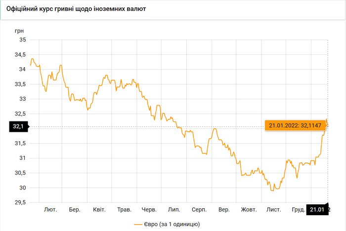 Национальный банк Украины обновил курсы валют на 21 января 2022 года.