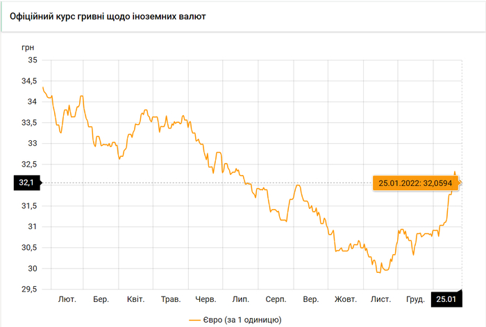 Национальный банк Украины обновил курсы валют на 25 января 2022 года.