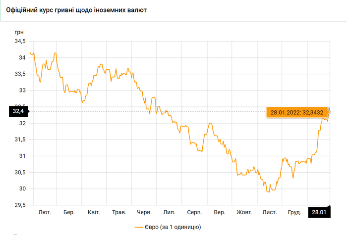 - 100 евро – 3234 грн. (32,34 за евро, -14 коп.)