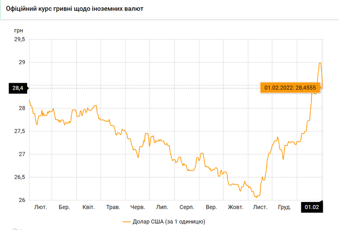 Национальный банк Украины обновил курсы валют на 1 февраля 2022 года.