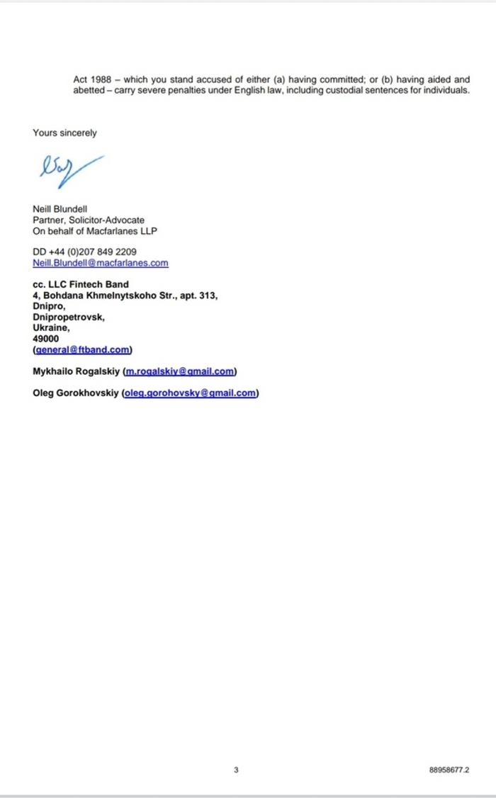 В уведомлении от Дмитрия Дубилета потребовали пояснений по сложившейся ситуации, в противном случае будет отправлено официальное заявление в международные органы по борьбе с мошенничеством, что грозит серъезными последствиями, вплоть до лишения свободы.