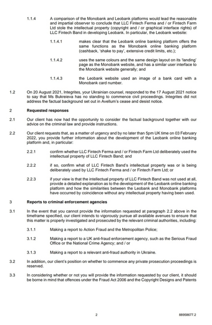 В документе приводятся доказательства адвокатов касательно хищения интеллектуальной собственности "Монобанка", а именно: