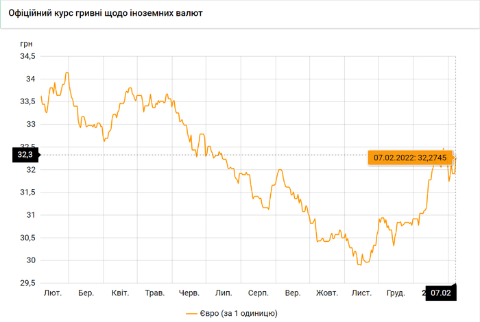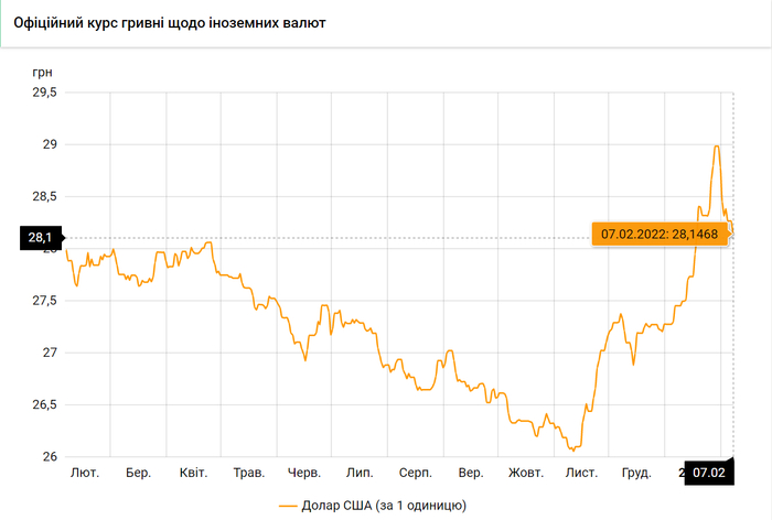 Национальный банк Украины обновил курсы валют на 7 февраля 2022 года.