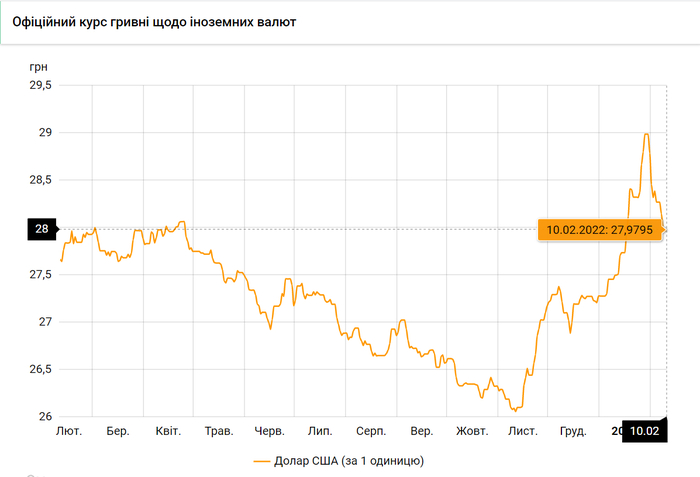 Национальный банк Украины обновил курсы валют на 10 февраля 2022 года.