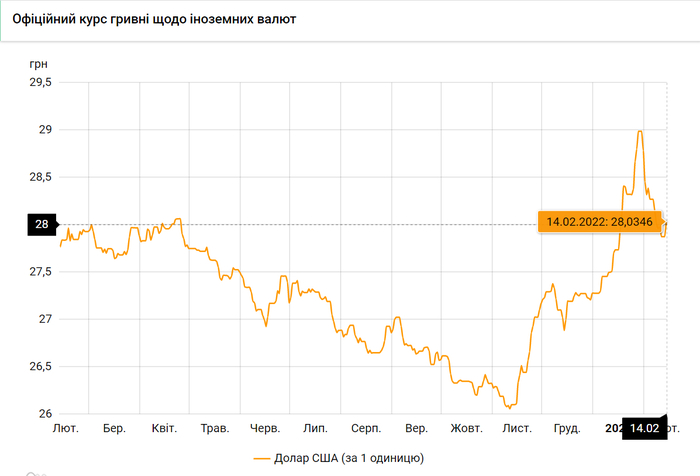 Курс валют на 14.02.2022: Доллар поднялся выше 28 грн