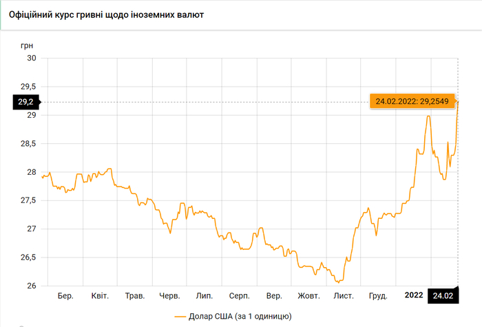 Национальный банк Украины обновил курсы валют на 24 февраля 2022 года.
