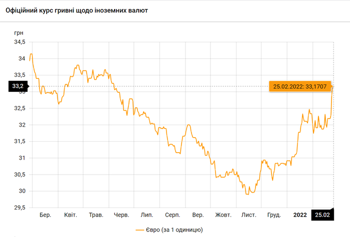 Национальный банк Украины обновил курсы валют на 25 февраля 2022 года.