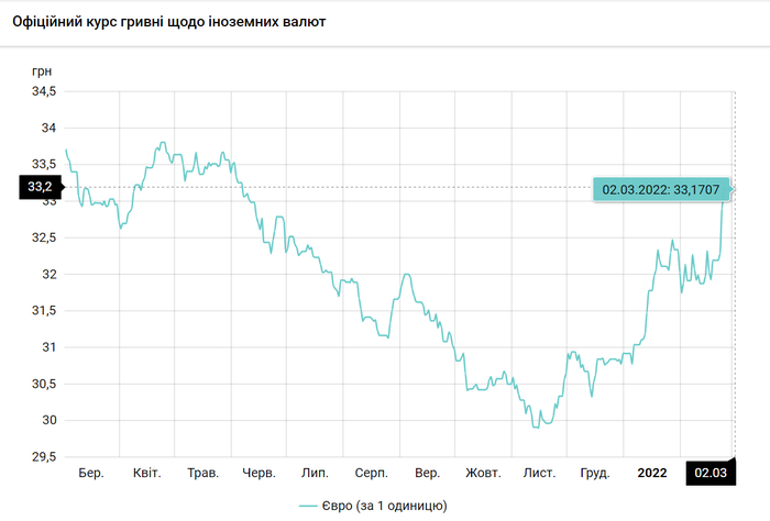 Национальный банк Украины обновил курсы валют на 2 марта 2022 года.