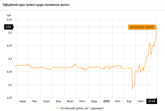 На черном рынке на 25.05.2022 установлен следующий курс:
