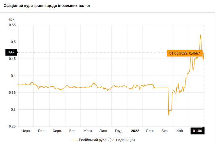 На черном рынке на 1.06.2022 установлен следующий курс: