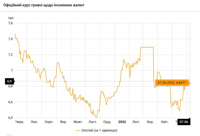 - 100 польских злотых – 684 грн. (6,84 за злотый, +1 коп.)