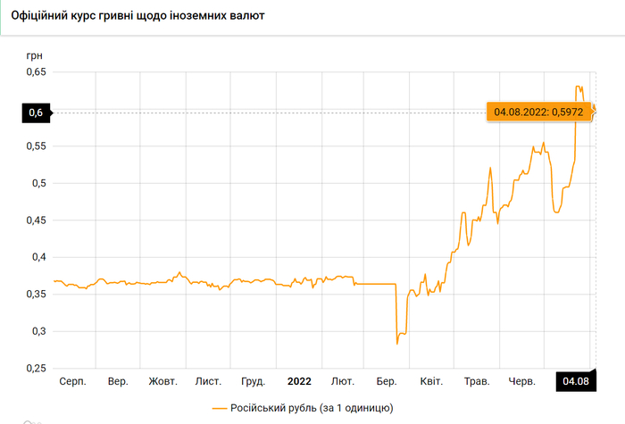На черном рынке на 4.08.2022 установлен следующий курс: