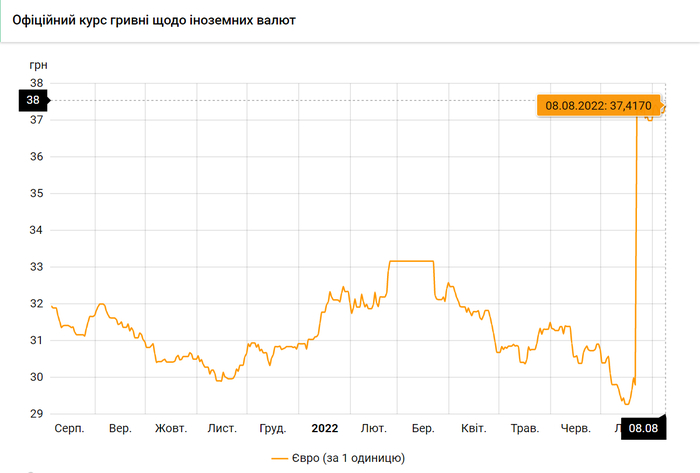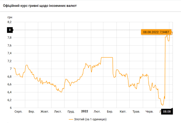 Национальный банк Украины обновил курсы валют на 8 августа 2022 года.