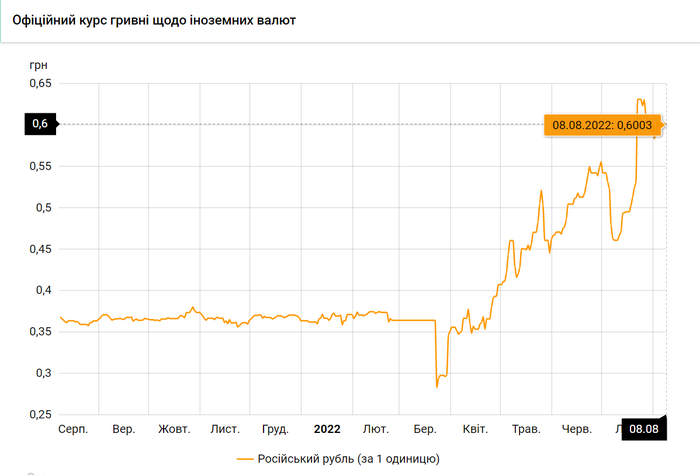 На черном рынке на 8.08.2022 установлен следующий курс: