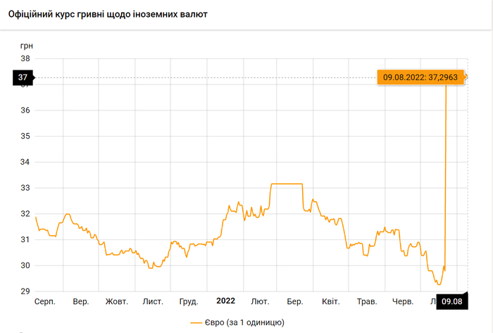 Национальный банк Украины обновил курсы валют на 9 августа 2022 года.