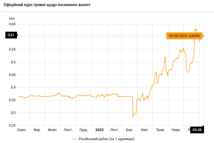 На черном рынке на 9.08.2022 установлен следующий курс: