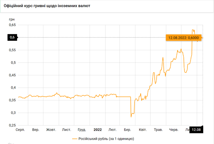 - 100 российских рублей – 60,0 грн. (6,00 за 10 рублей, 0 коп.)