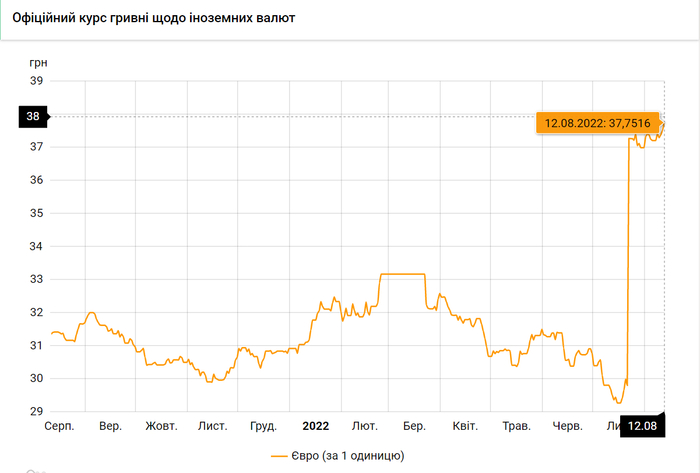 Национальный банк Украины обновил курсы валют на 12 августа 2022 года.