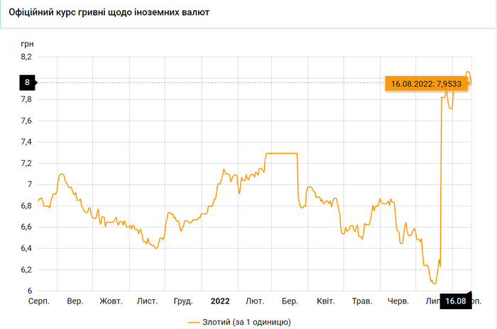 - 100 польских злотых – 795 грн. (7,95 за злотый, -8 коп.)