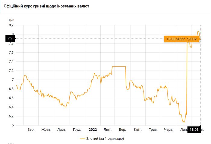 - 100 польских злотых – 790 грн. (7,90 за злотый, +2 коп.)