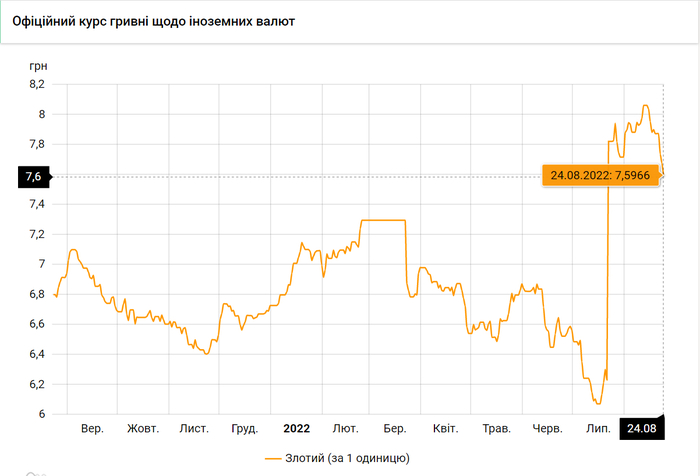 Национальный банк Украины обновил курсы валют на 24 августа 2022 года.