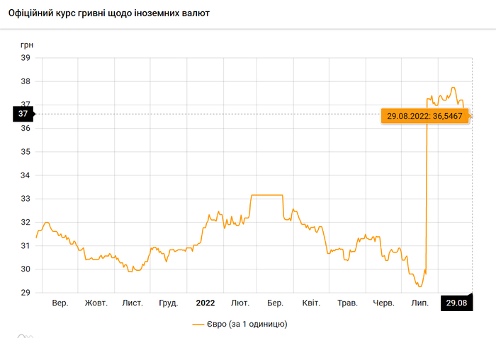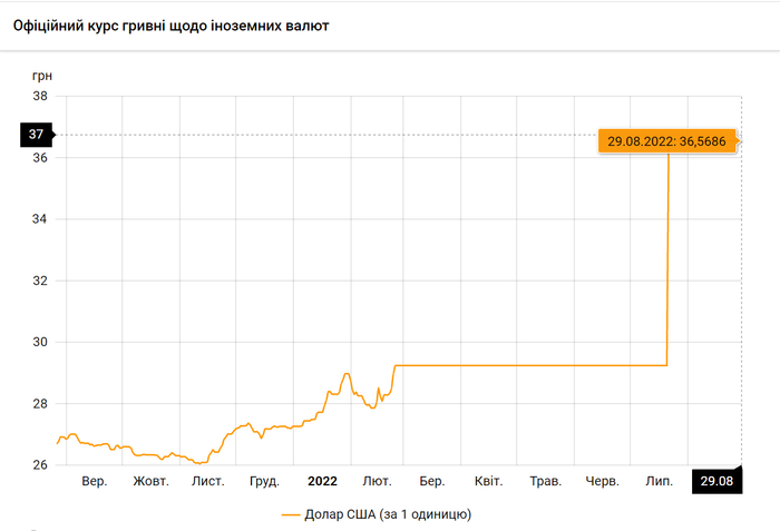 Национальный банк Украины обновил курсы валют на 29 августа 2022 года.