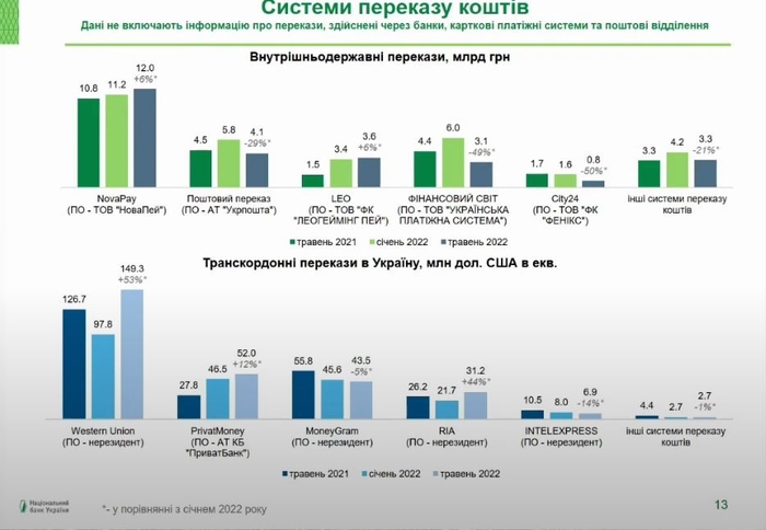 «В целом у всех основных игроков (занимающихся переводами по Украине – ред.) уменьшение количества переводов и их объемов, но есть два крупнейших участника, у которых произошел рост. Это МПС LEO и NovaPay», – сообщил Директор Департамента платежных систем и инновационного развития НБУ.