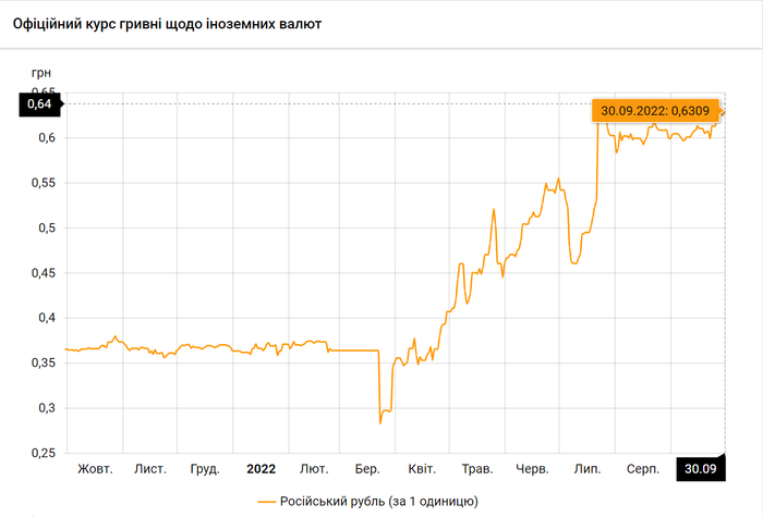 На черном рынке на 30.09.2022 установлен следующий курс: