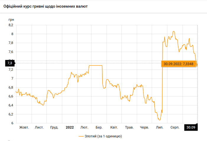 - 100 польских злотых – 733 грн. (7,33 за злотый, +7 коп.)