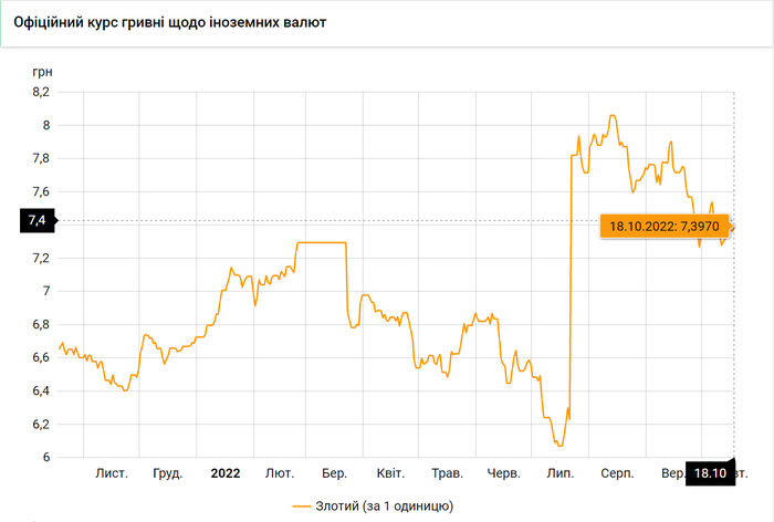 - 100 польских злотых – 739 грн. (7,39 за злотый, +3 коп.)