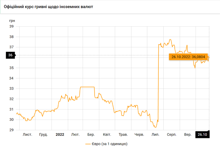 Национальный банк Украины обновил курсы валют на 26 октября 2022 года.