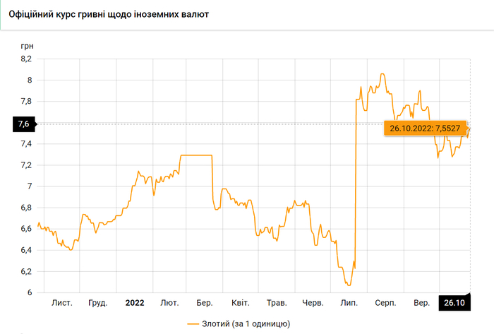 - 100 польских злотых – 755 грн. (7,55 за злотый, +4 коп.)