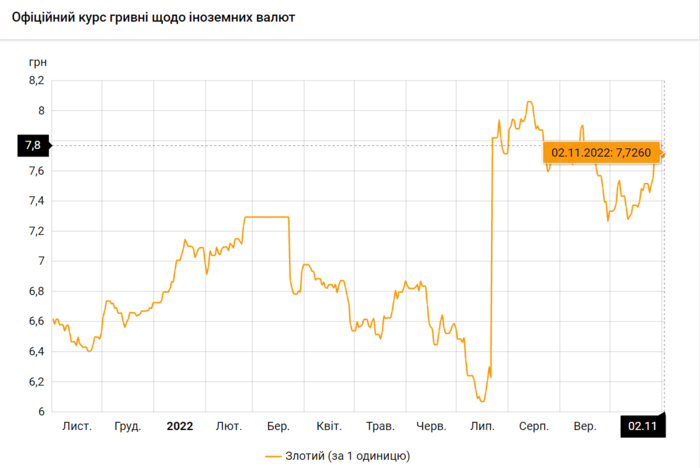 - 100 польских злотых – 772 грн. (7,72 за злотый, +3 коп.)