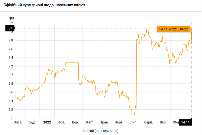 - 100 польских злотых – 806 грн. (8,06 за злотый, +34 коп.)