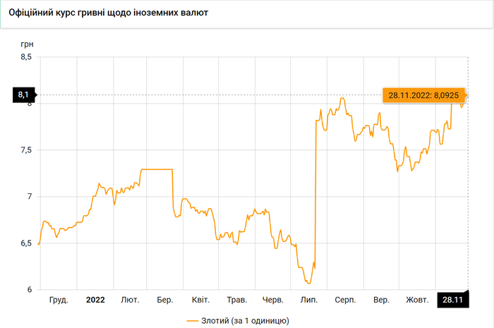 - 100 польских злотых – 809 грн. (8,09 за злотый, -1 коп.)