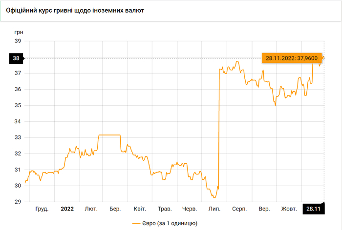 Национальный банк Украины обновил курсы валют на 28 ноября 2022 года.