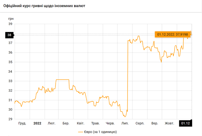 Национальный банк Украины обновил курсы валют на 1 декабря 2022 года.