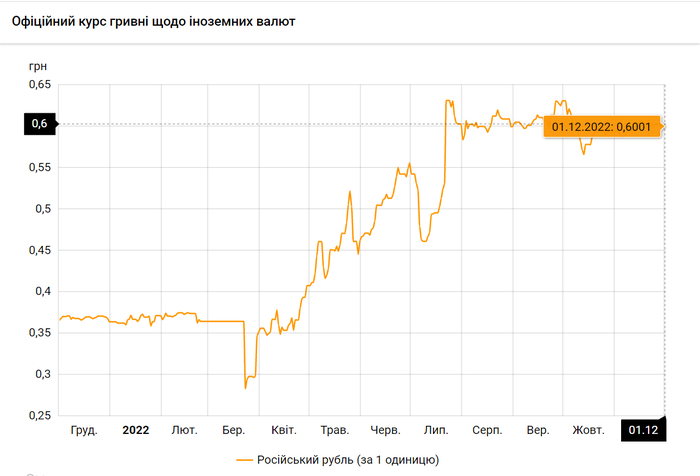 - 100 российских рублей – 60,0 грн. (6,00 за 10 рублей, 0 коп.)