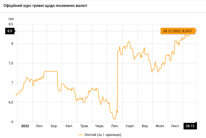 - 100 польских злотых – 833 грн. (8,33 за злотый, -3 коп.)