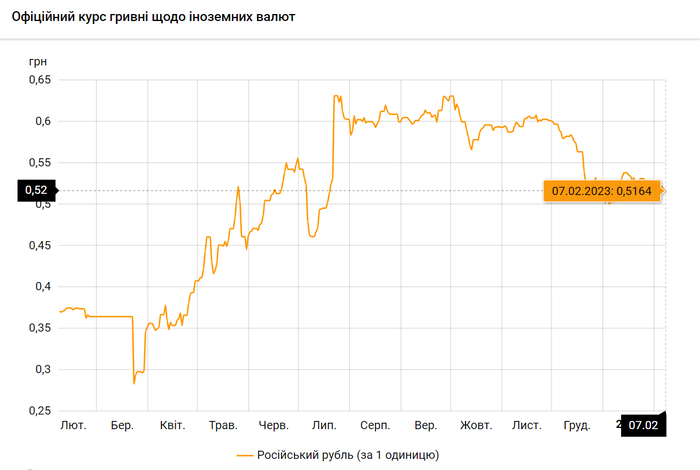 На черном рынке на 7.02.2023 установлен следующий курс: