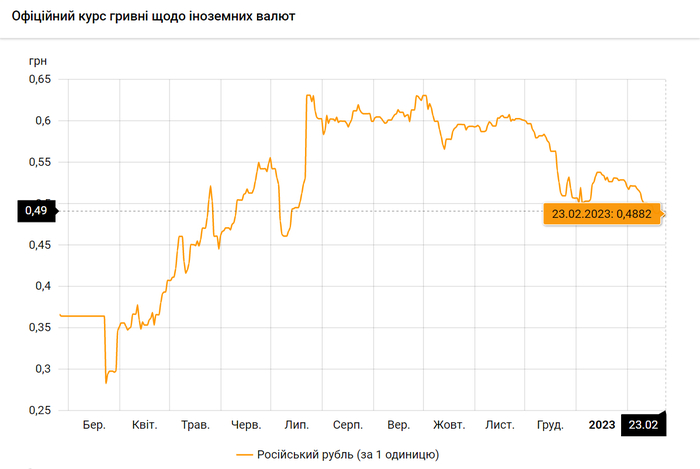 На черном рынке на 23.02.2023 установлен следующий курс:
